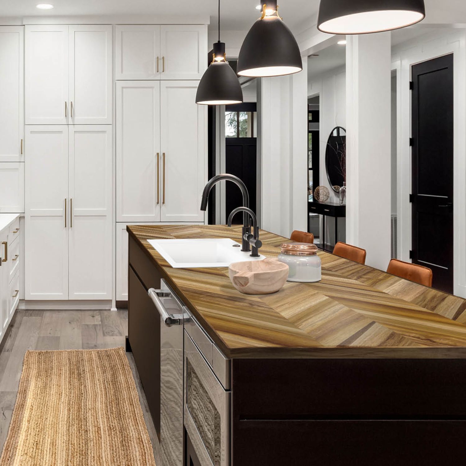 Butcher block is a type of countertop made from strips of solid wood glued together. Butcher block has become a popular choice for kitchens and other areas of the home due to its warmth, natural appeal, and versatility. It offers a timeless aesthetic that complements a variety of design styles, from rustic farmhouse to modern industrial. BL offers Acacia and Hevea butcher block woods.