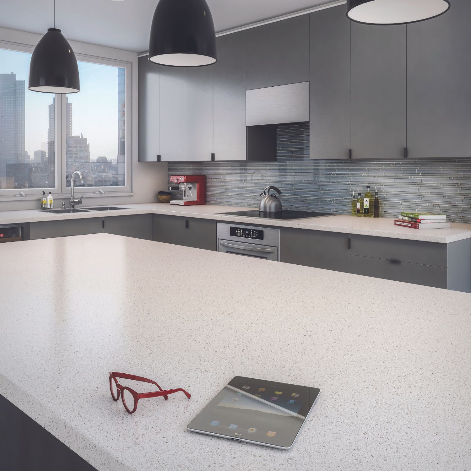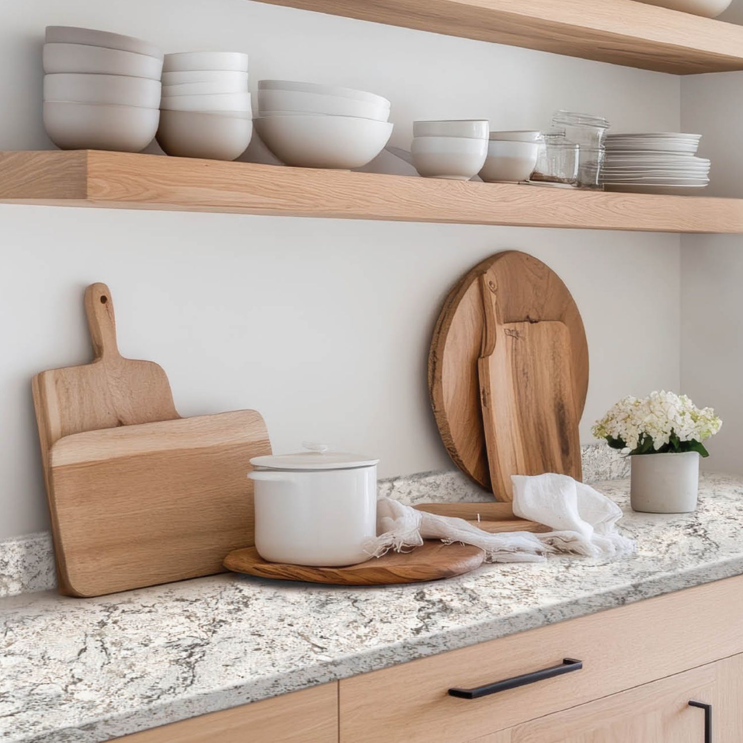 Cleaning our countertops are simple and they can easily be cleaned with a mild detergent and damp cloth.