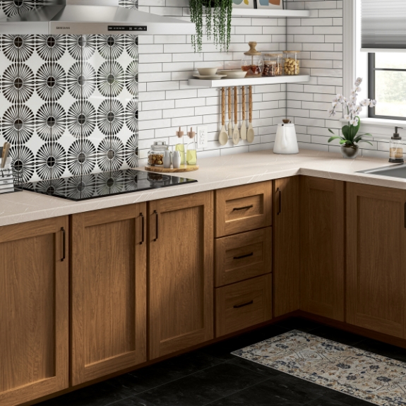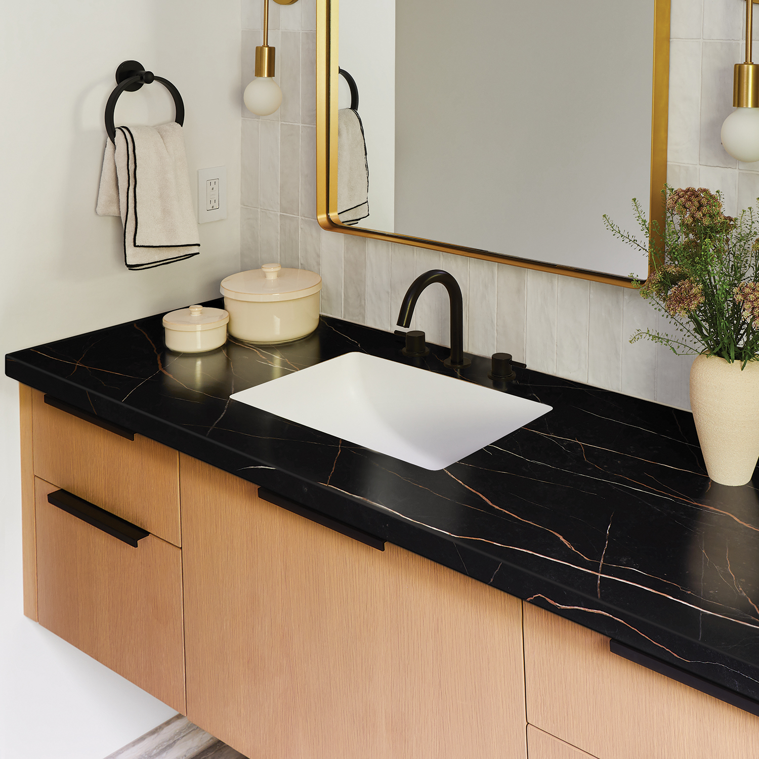 An endcap kit is designed to be applied to the unfinished, exposed countertop ends after any cuts have been made. Endcaps not only provide a finished look, they also help protect the countertops by keeping moisture out. An endcap kit includes both left and right endcaps. On the other hand, an endsplash kit is essentially a backsplash for the end of the countertop where it meets the wall. Endsplashes match the contour of your countertop edge profile while sitting directly on top of the countertop surface to provide added protection. Endsplashes are reversible and fit either end of the countertop.