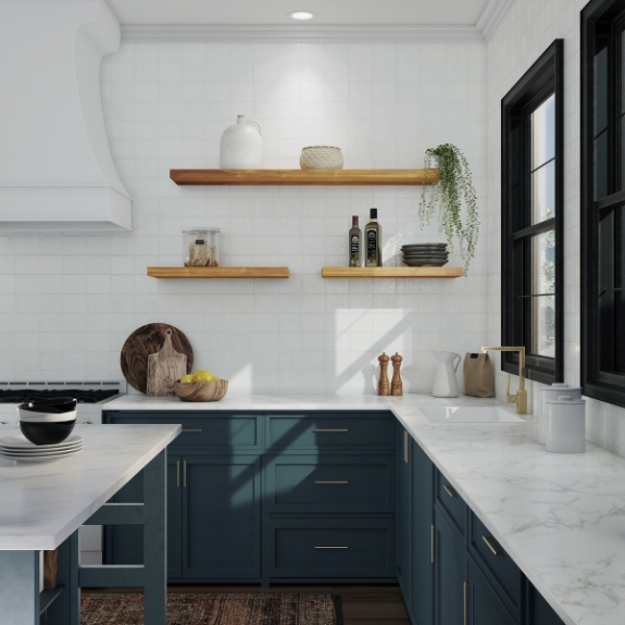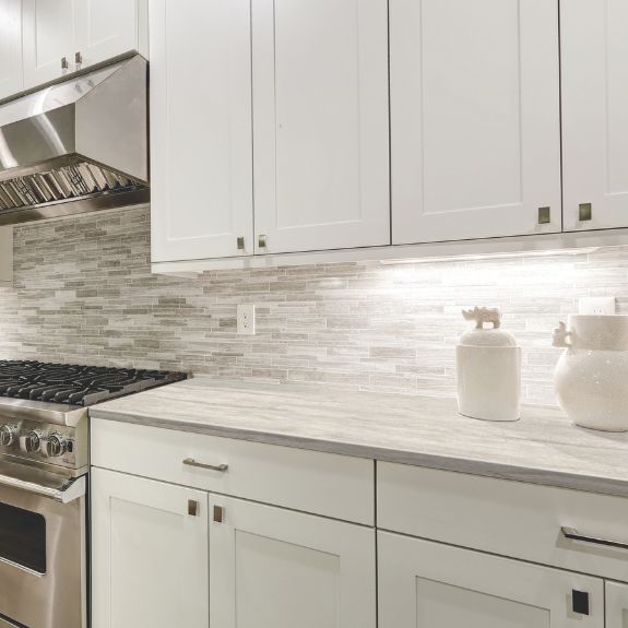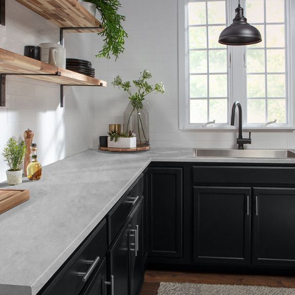 Unlike other traditional laminate worktops, the underside of the Stretta worktop is finished allowing the worktop to be balanced, resulting in less warping over time. Because Stretta features a balanced construction, it can also be used in other applications such as shelving. The term full-thickness refers to Stretta’s design. Most laminate countertops are 0.75” thick, have a build down edge, and an unfinished backside. Stretta is 1-1/8” thick from the front edge to the back of the worktop and has a finished back.